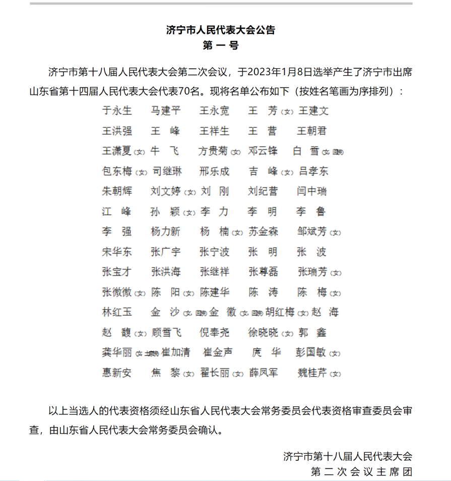 济宁市人民代表大会公告