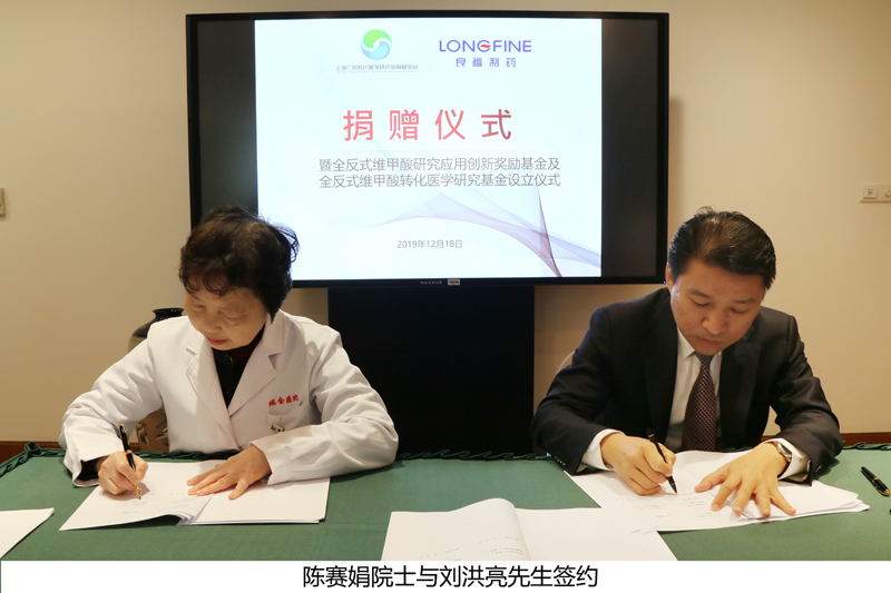 签约仪式上,国家转化医学中心(上海)主任、上海广慈转化医学研究发展基金会理事长陈赛娟院士接受山东良福制药有限公司捐赠,设立“全反式维甲酸研究应用创新奖励基金”及“全反式维甲酸转化医学研究基金”,用于奖励在全反式维甲酸治疗、适应证拓展、药品生产工艺优化等方面有突出贡献的医生、科学家、工程师;支持在转化医学国家重大科技基础设施(上海)的多组学技术平台、药物筛选平台、临床研究型病房等开展全反式维甲酸相关的转化医学研究;共同推进中国成人白血病诊疗登记管理系统的建设。