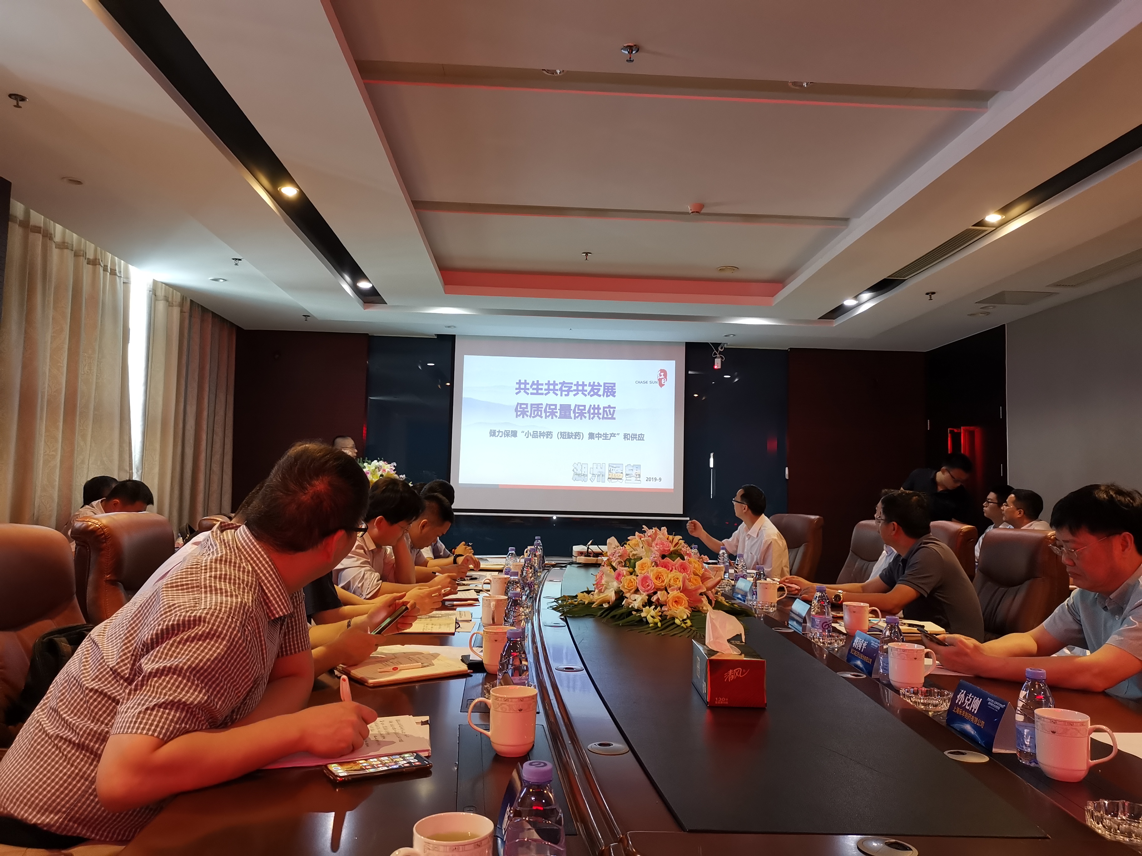 同时,国家工信部、卫康委、食药监局等部委主持召开了国家小品中药集中生产基地建设情况调研会,就如何加快药联体建设、保障小品种药品的稳定供应和政策扶持等方面进行了座谈。公司董事长刘洪亮代表公司做了发言,向与会部委领导介绍了公司近20年来积极践行责任、为保障维甲酸片市场供应做出的积极努力;并就如何加强对小品种药品的招标挂网、医保、价格等环节的政策扶持提出了建议。