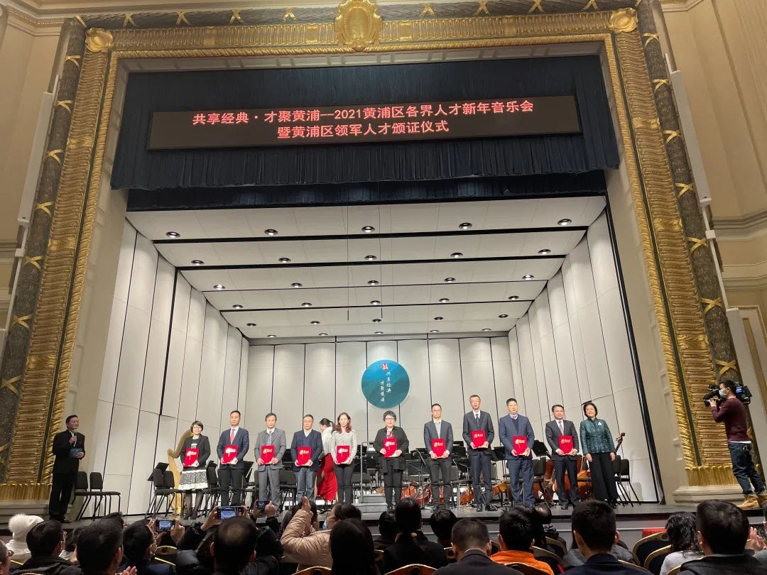 2021年1月5日下午,“共享经典.才聚黄浦”2021海市黄浦区各界人才新年音乐会暨领军人才颁证仪式在上海音乐厅举行。中共黄浦区委和区政府领导向入选领军人才颁发了领军人才证书。