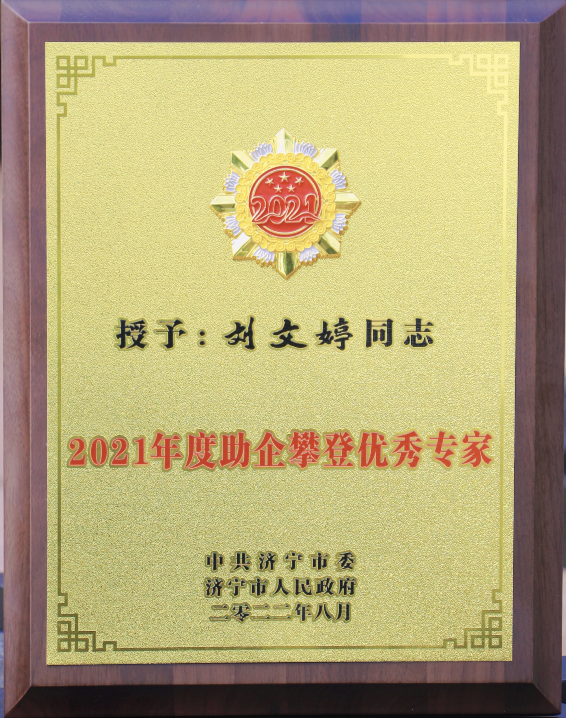 喜报!公司研发部经理刘文婷荣评济宁市2021年度助企攀登优秀专家!
