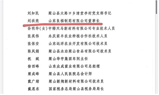 山东良福制药有限公司董事长刘洪亮获此殊荣。